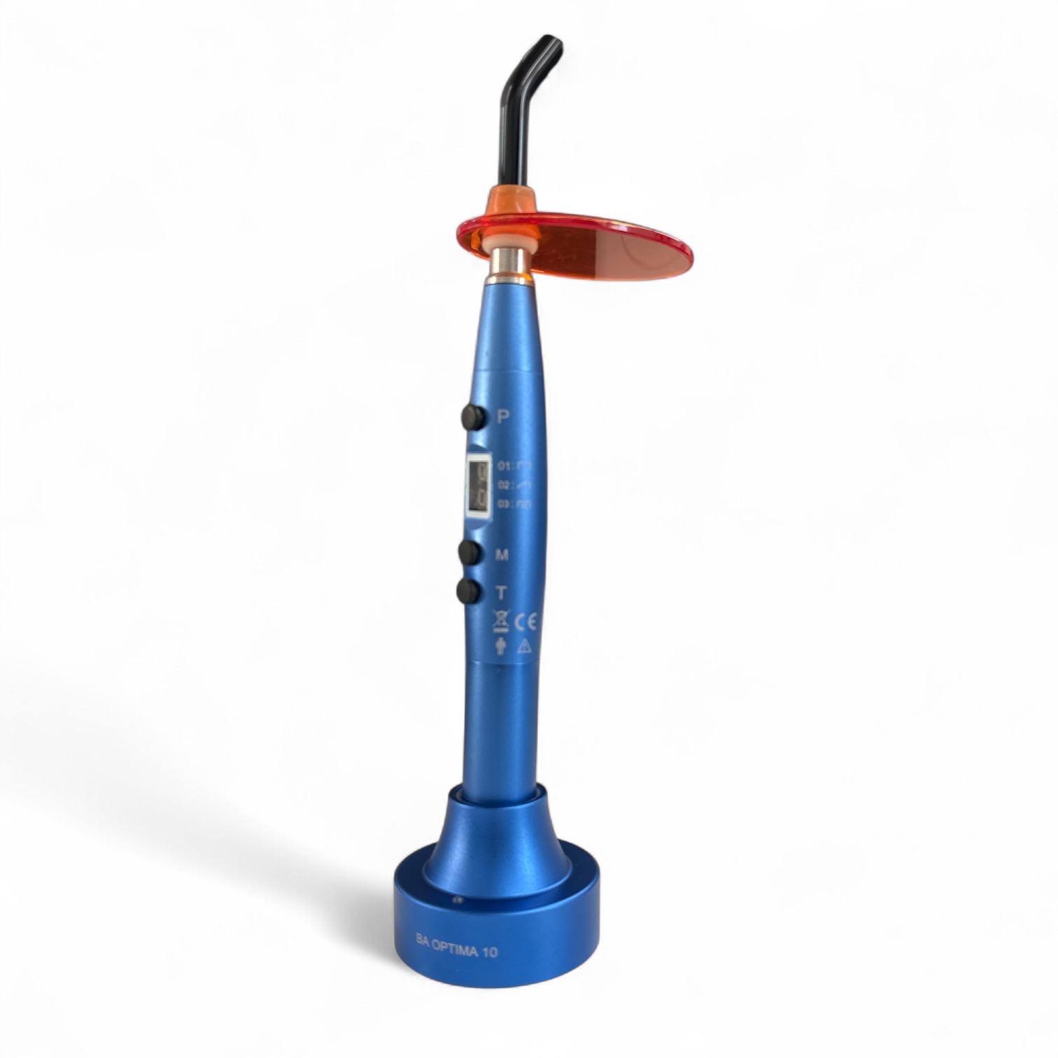 Die OPTIMA 10 verfügt über eine blaue LED-Lampe, welche eine hohe Lichtintensität zur Polymerisation von lichthärtenden Dentalmaterialien generiert. Im Gegensatz zu Halogenlampen, die ein vollständiges Lichtspektrum erzeugen, strahlt LED Licht im Wellenlängenbereich 420 bis 480 nm aus. Aufgrund des konzentrierten Lichtbereiches ist die Intensität des LED-Lichts ab einer bestimmten Lichtstärke höher als das von Halogen-Licht. Die Mehrzahl der lichthärtenden Dentalmaterialien reagiert auf diese Lichtwellenlänge.