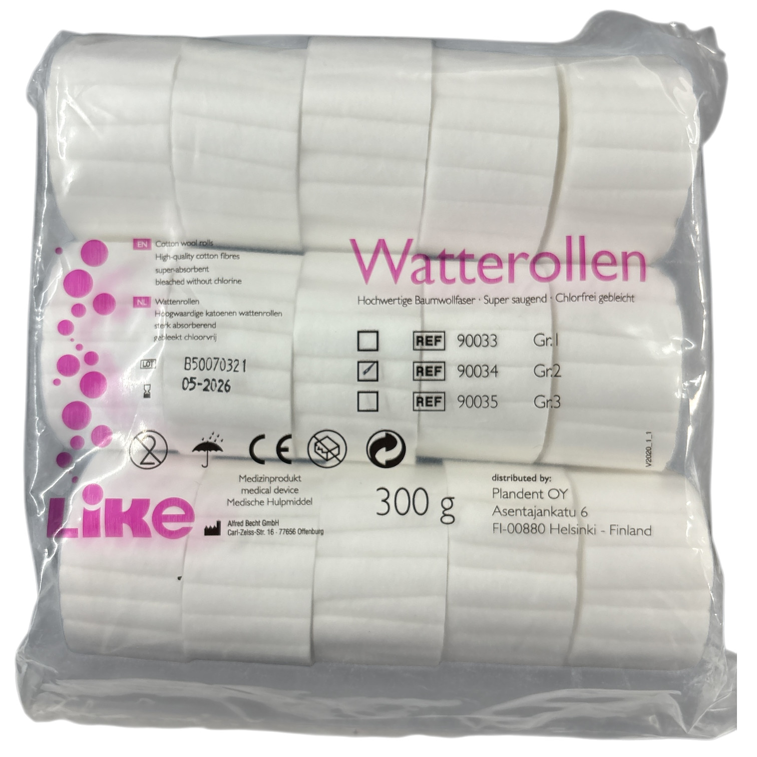 Becht Watterollen Gr. 2 haltbar bis: 05.2026 5x300g REF90034 Dental Watte