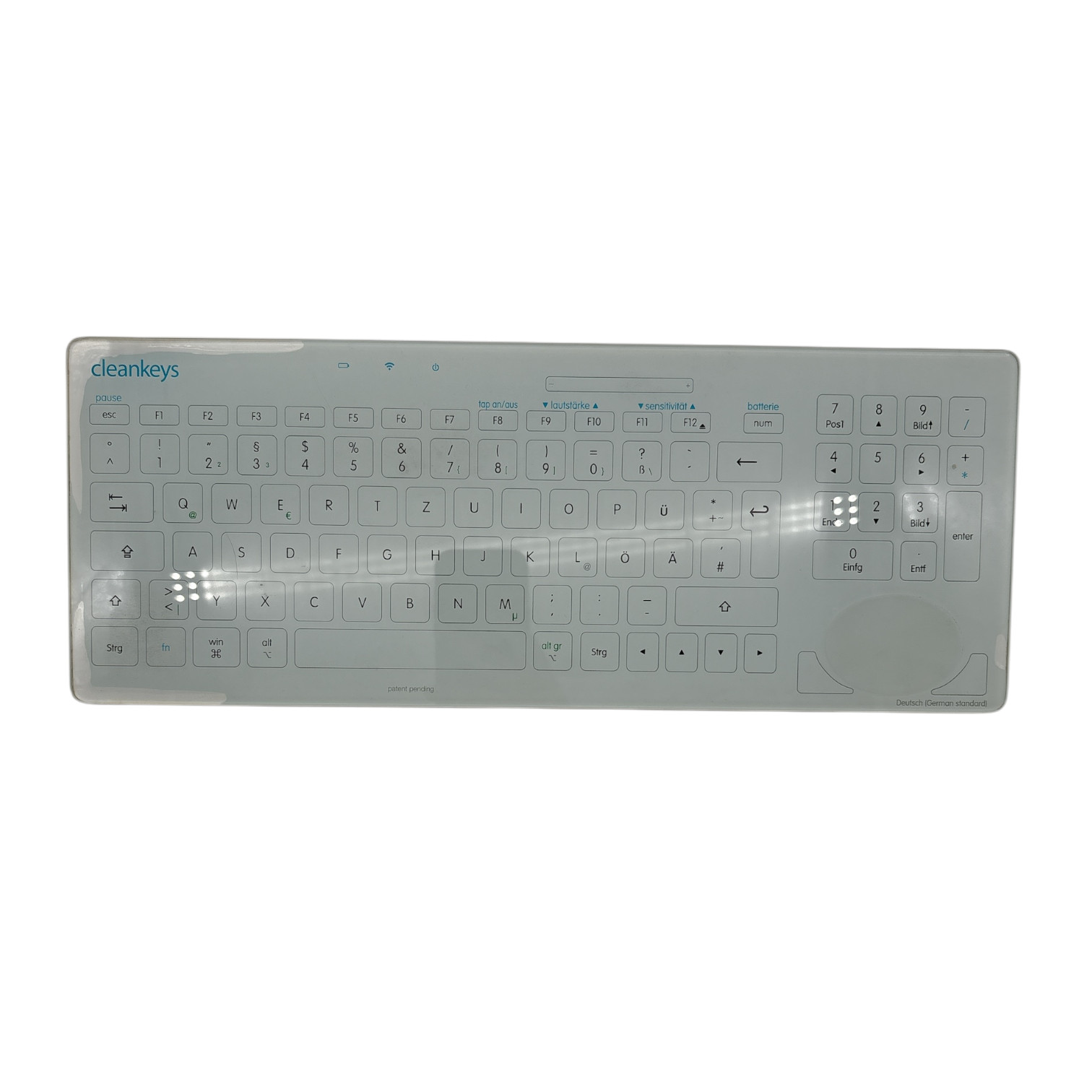 Typbezeichnung cleankeys – Wireless Glass Keyboard