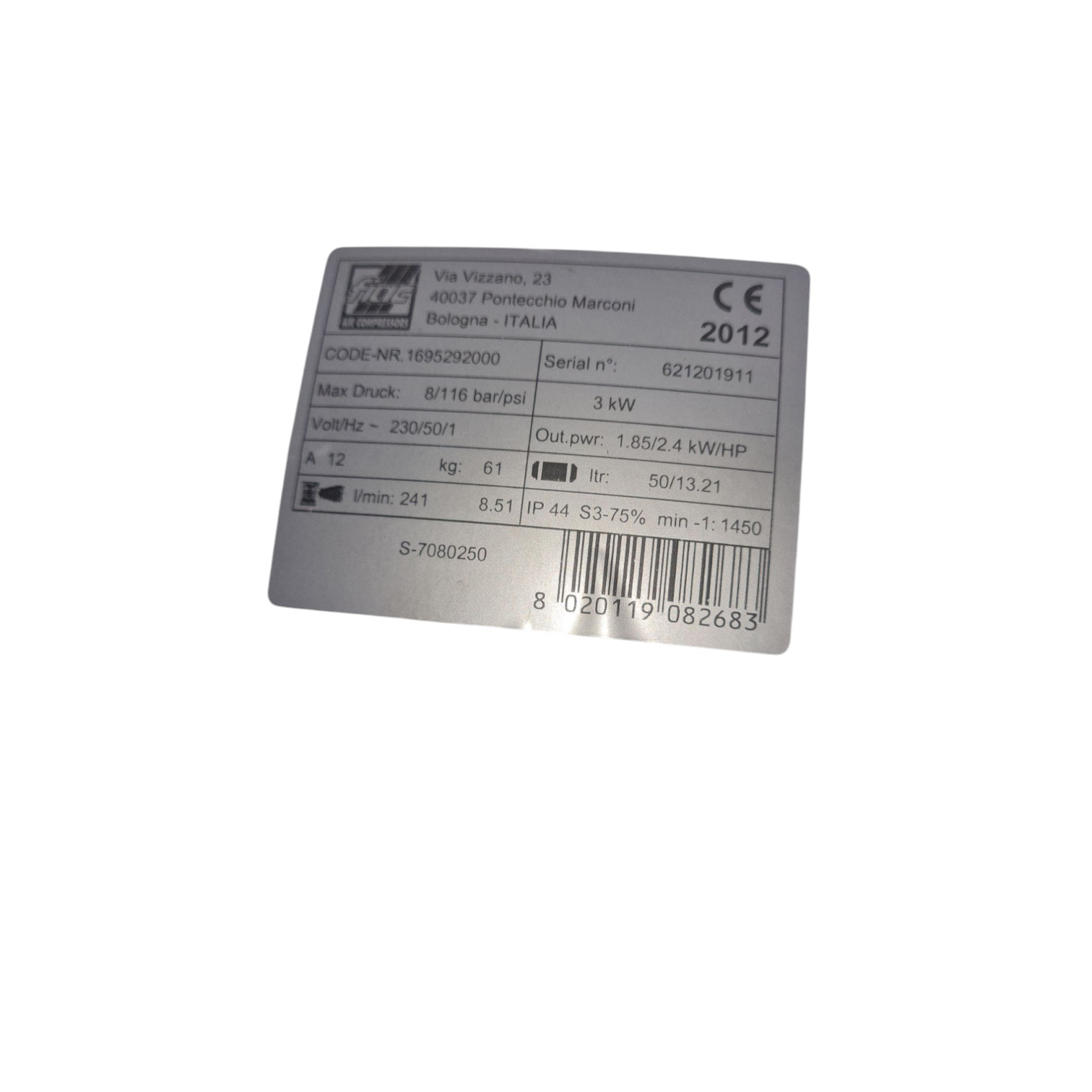 Zum Verkauf steht ein leistungsstarker SOLIDAIR Kompressor SOLID 250 DE, der 2012 gebaut wurde.